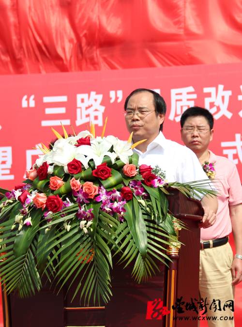 区委书记、区长谭小平在仪式上致辞(解巾英 摄)