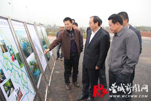 本站讯(记者 解巾英) 11月13日下午,望城区委书记谭小平一行视察了斑马湖片区路网、绿化带的规划设计情况以及桂芳佳园楼盘、马桥河路与雷高路交汇处的建设情况。