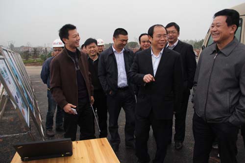 谭小平一行视察了新行政中心周边环境,文源路与宝粮路的拓改工程已经到了扫尾阶段,路边的绿化带建设得很好,栽种了红叶石楠、桂花、茶花、红桎木、玉兰树、木芙蓉等花木,谭小平对道路两旁的绿化设计给予充分肯定,并提出,绿化带的设计要保持原生态,要高低错落、乔灌错落、花草错落。望城城投集团负责人向谭小平介绍了斑马湖片区城市设计、斑马湖东湖生态湿地公园、斑马湖片区慢行系统规划以及“制度+科技”工程项目管理等方面的情况。谭小平指出,要抢抓机遇,加快项目施工进度,把望城建设得更加美好,增强作为望城人的自豪感。
