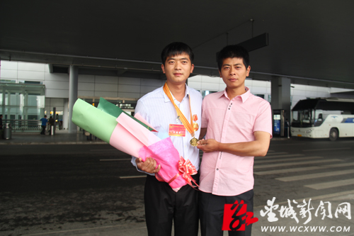 军功章里,有袁虎(左)的付出,也有哥哥袁龙(右)的汗水。(刘赛 摄)