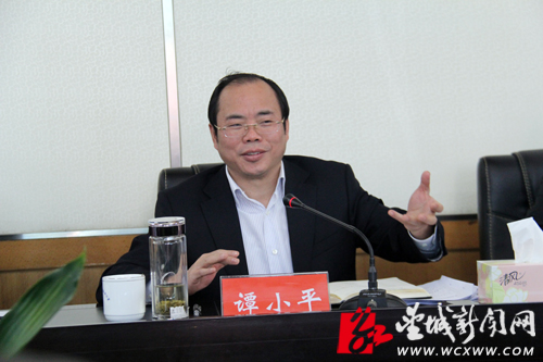 区委书记谭小平要求三家公司要“各司其责、自主经营、滚动开发、自负盈亏”。(刘赛 摄)