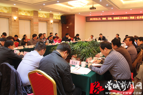 市政府就2013年市人大、政府、法院、检察院工作报告(草案)征求市人大代表望城联组意见。(刘赛 摄)