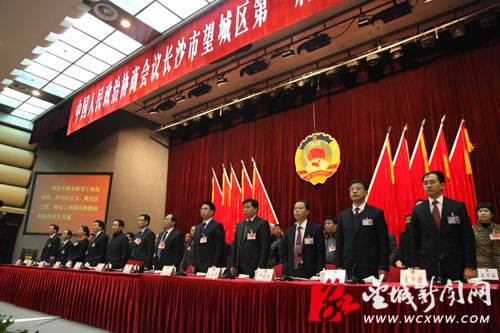 在庄严的国歌声中,政协望城区第一届委员会第二次会议拉开序幕。姚泽子 摄