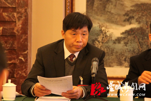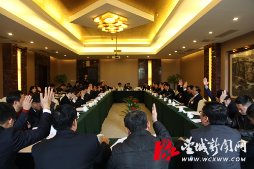 望城区人大常委会主任喻金平主持召开主席团全体成员第一次会议。(姚泽子 摄)