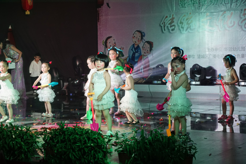 本站讯(记者 姚泽子)5月27日下午,望城区华篮幼儿园举办主题为“国学浸童心、快乐伴成长”的庆六一文艺汇演。在传统佳节到来之前,该园特意围绕传统文化做文章,茶艺、礼仪、三字经、国学等节目,吸引了两三百名家长和孩子观看,互动环节更是气氛活跃。据了解,该园是第一所以国学教育为主的综合性幼儿园。
