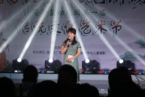 华蓝幼儿园李园长上台致辞,祝所有小朋友们节日快乐。
