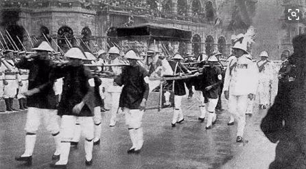 1922年英国爱德华皇储乘坐八抬大轿经过干诺道中