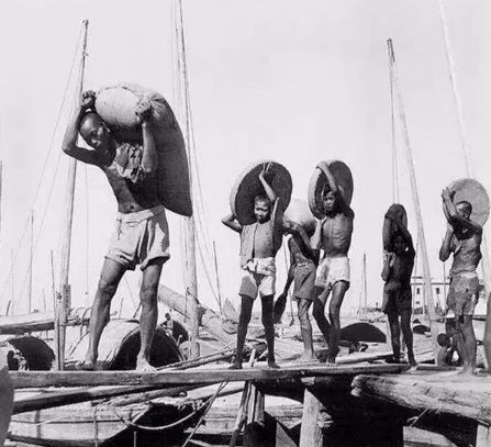 1946年裝卸货物的苦力,这里有很多未成年孩子